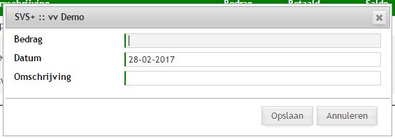 Door te klikken op een betaling kan deze worden bewerkt. Door te klikken op het +-icoontje kan een betaling worden toegevoegd. Per betaling worden een aantal gegevens geregistreerd.